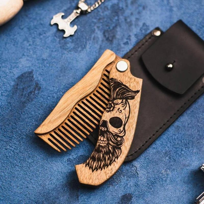 Wooden folding beard comb | Half Skull Special is a stylish and original accessory.