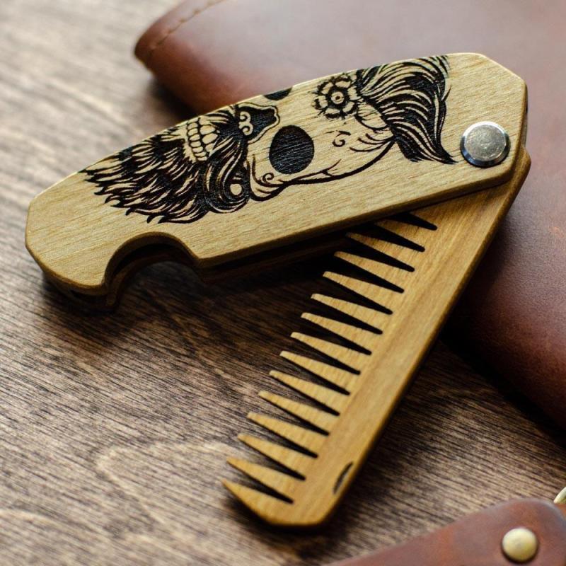 Wooden folding beard comb | Half Skull is a stylish and original accessory.