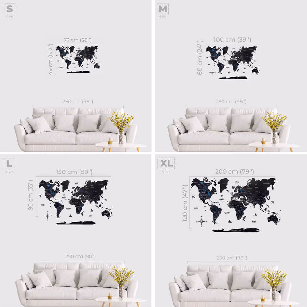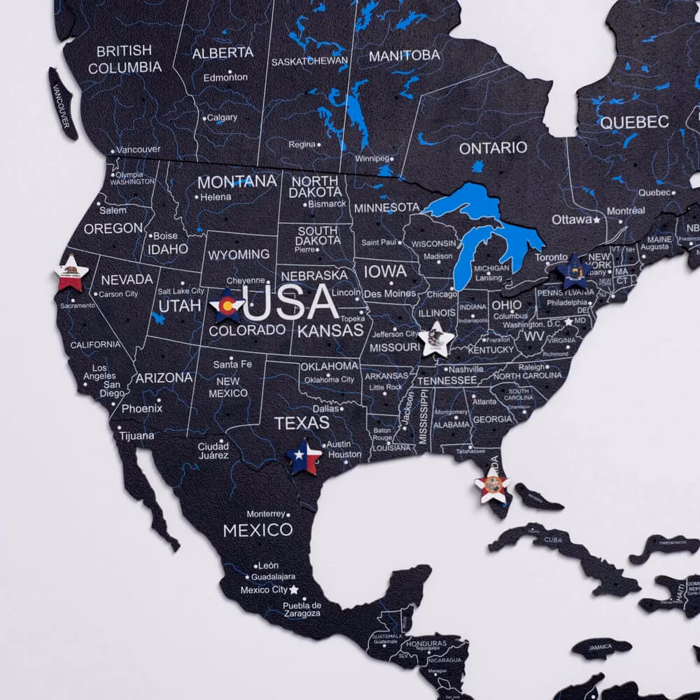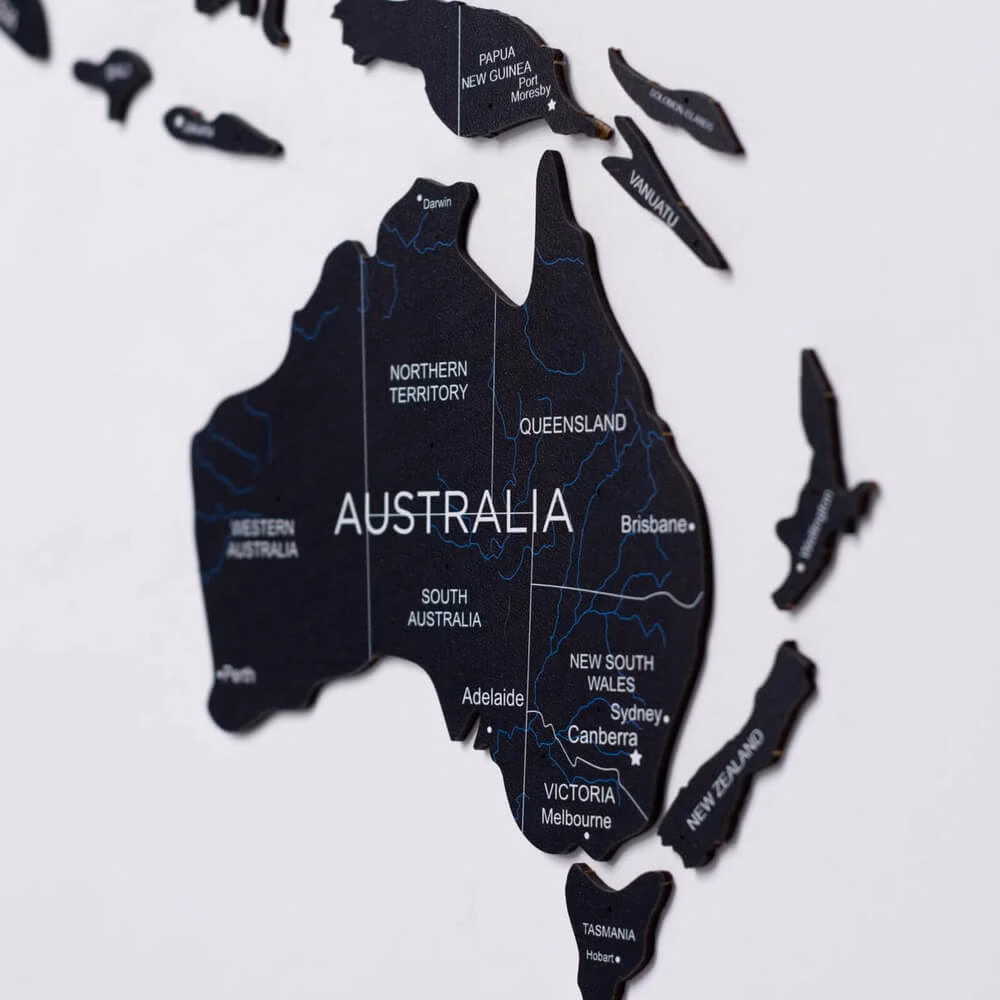 Wooden wall map | 2D Midnight is nice to the touch and will delight your eyes for years to come.