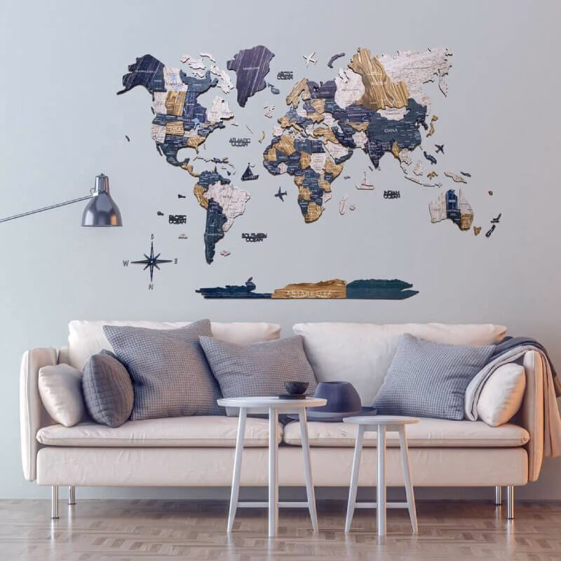The colored Wooden Wall maps are stylish, cozy, original, and made from high-quality fiberwood.
