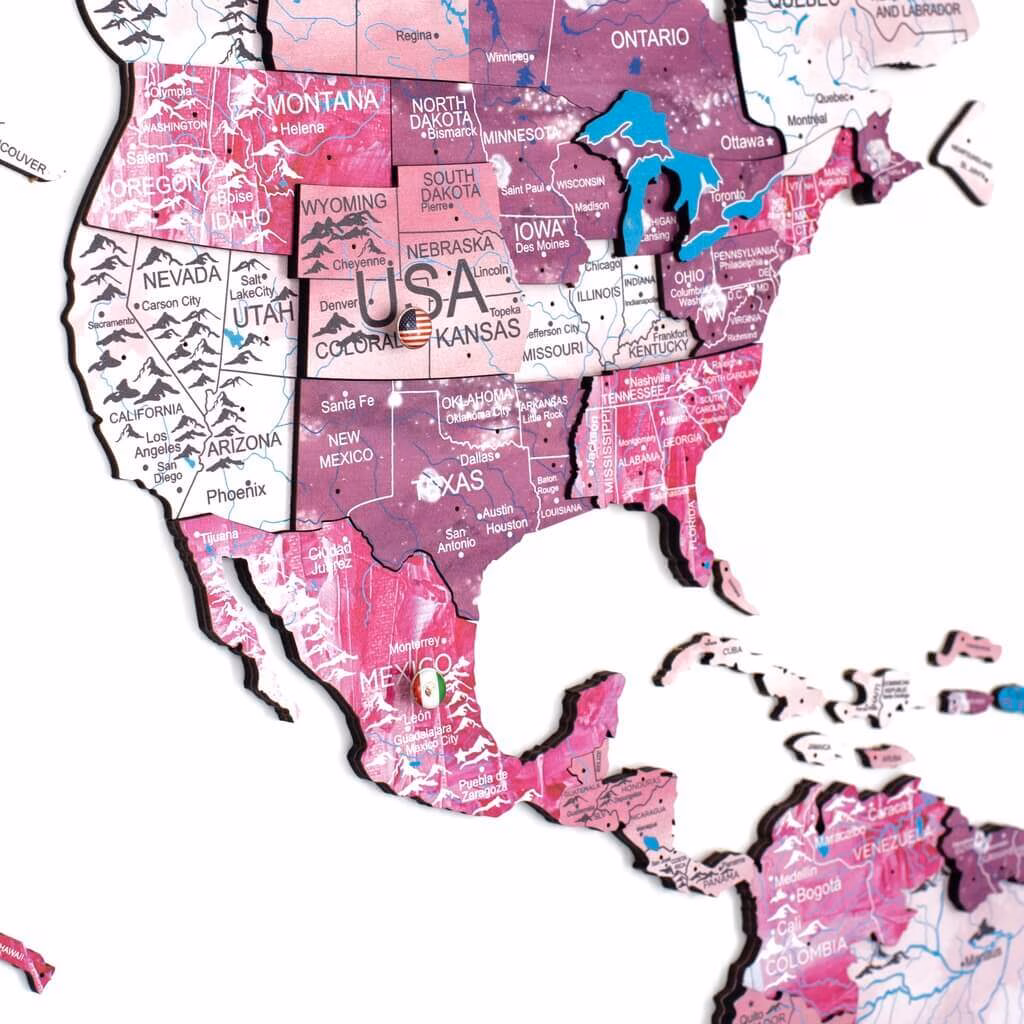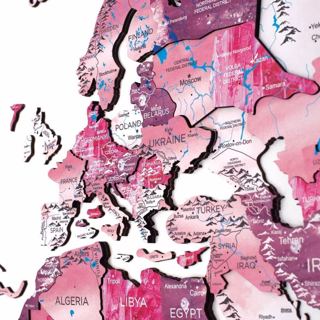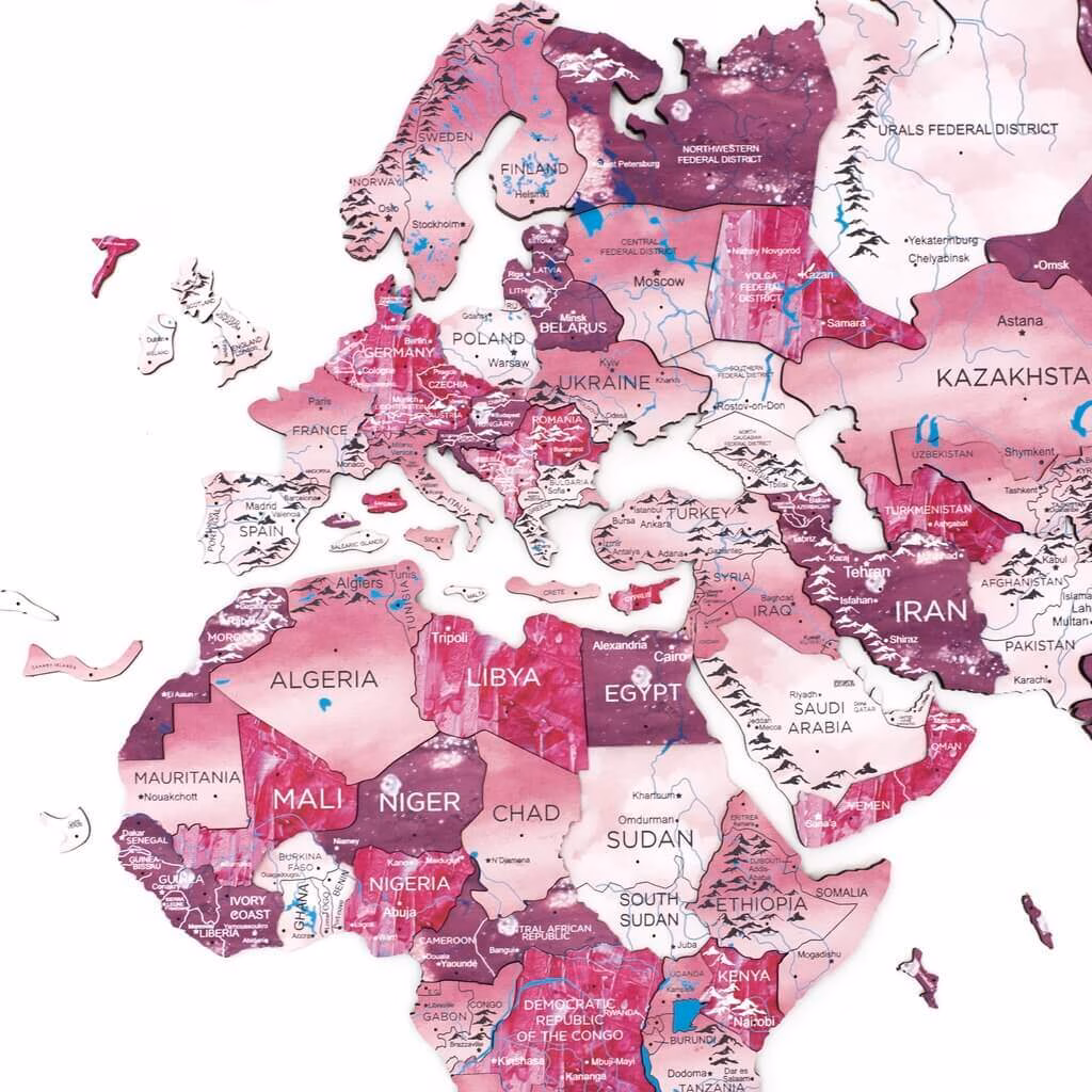 Wooden wall map | 3D Dream is nice to the touch and will delight your eyes for years to come. The map creates a 3D effect due to its unique raised areas from 6 mm to 12 mm.