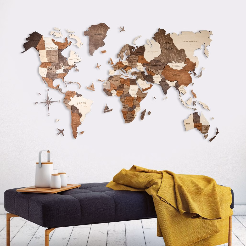 Wooden Wall map is stylish, cozy, original, and made from high-quality plywood.