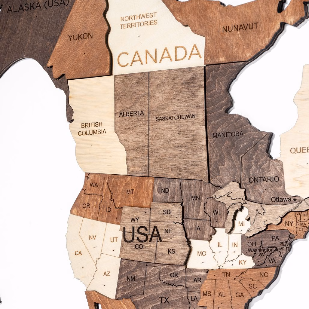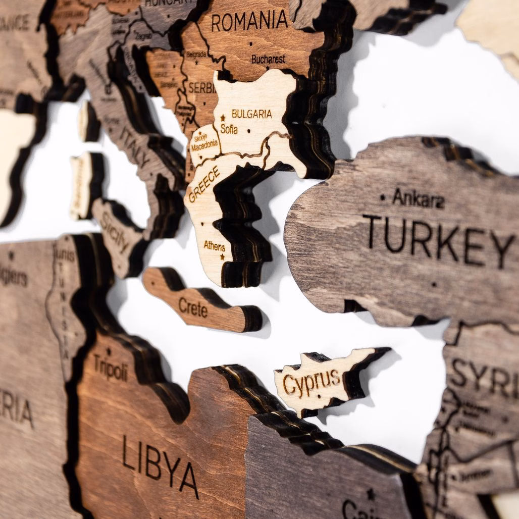 Wooden wall map | 3D Classic is nice to the touch and will delight your eyes for years to come. The map creates a 3D effect due to its unique raised areas from 6 mm to 12 mm.