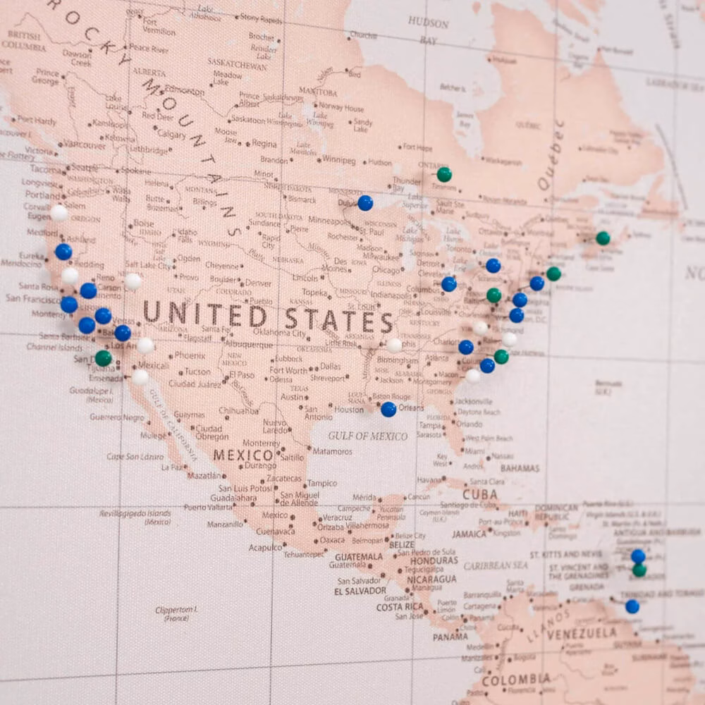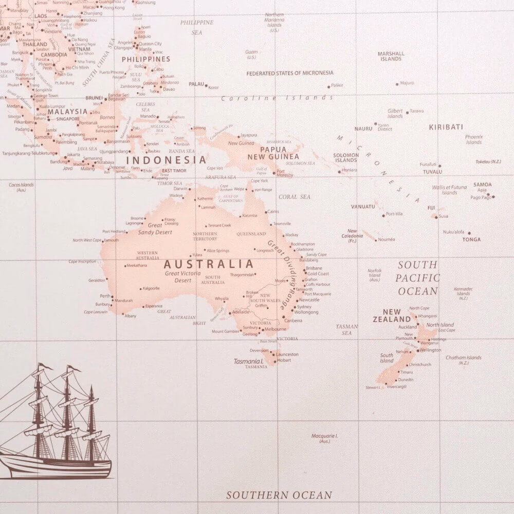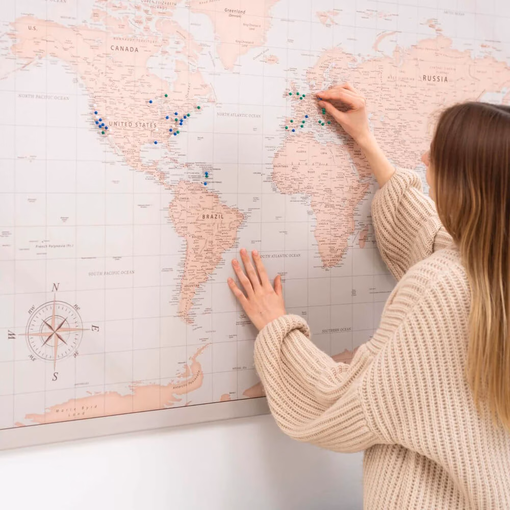 World Map on Canvas | Antique – Ignite your wanderlust with our “Antique” adventure map. Blending vintage charm with modern convenience, it also includes pins to stylishly mark your explorations.