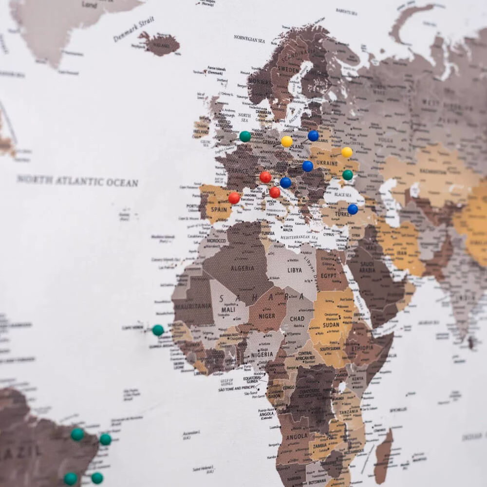 World Map on Canvas | Desert – Immerse yourself in the warm hues and intricate details of our “Desert” canvas world map, a captivating addition to any home or office decor.