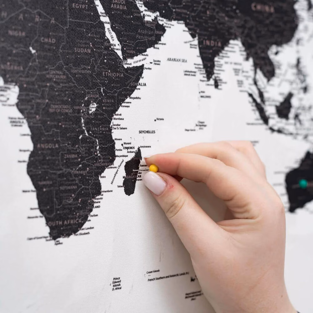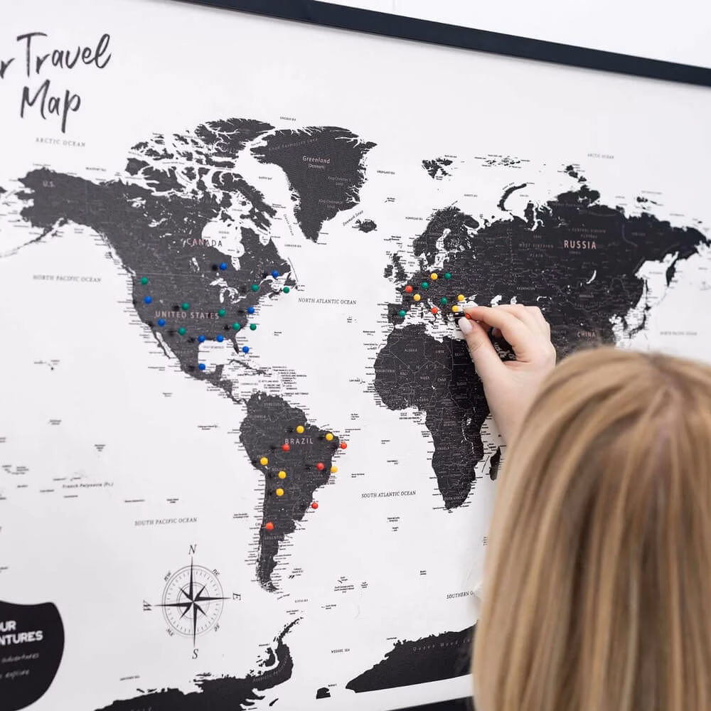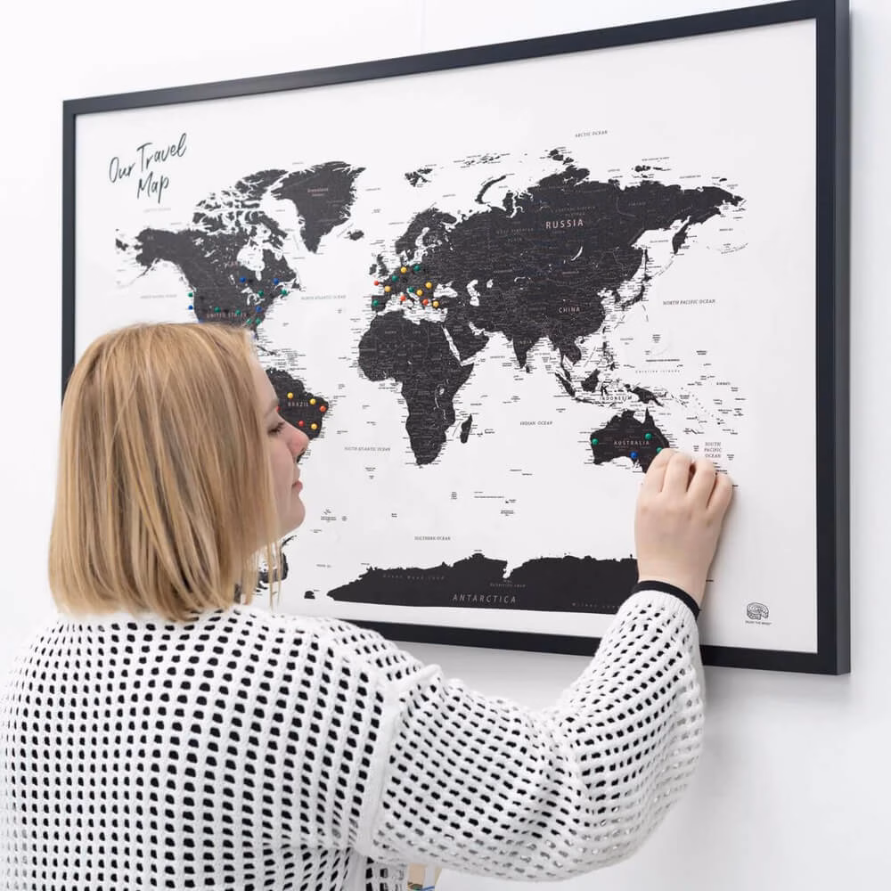 World Map on Canvas | Onyx – boasts a sleek and stylish design, perfect for home or office decor. It adds a touch of refinement while offering a practical reference for geographical exploration. Must have for black admirers.