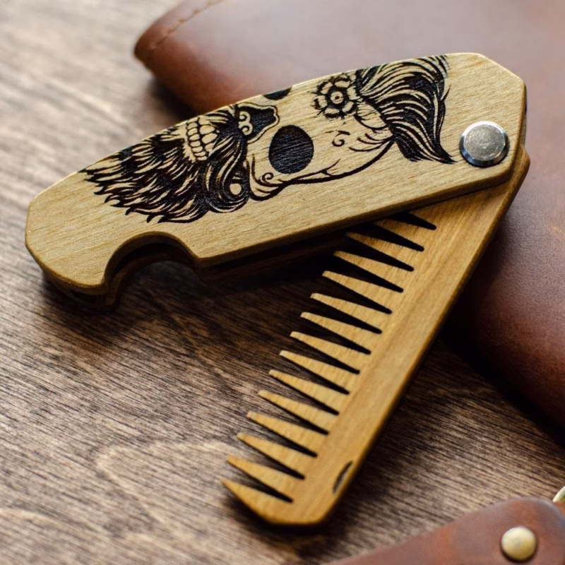 Puidust kokkupandav habemekamm | Half Skull on stiilne ja isikupärane aksessuaar.