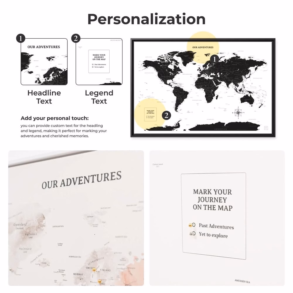 Maailma Kaardid Lõuendil kollektsioon tõeline kunstiteos mis ühendab keerukaid mandrite, riikide ja linnade detaile ja elegantse disaini. Valige erinevate kujunduste hulgast, jäädvustage oma mälestusi, personaliseerige enda ruume.