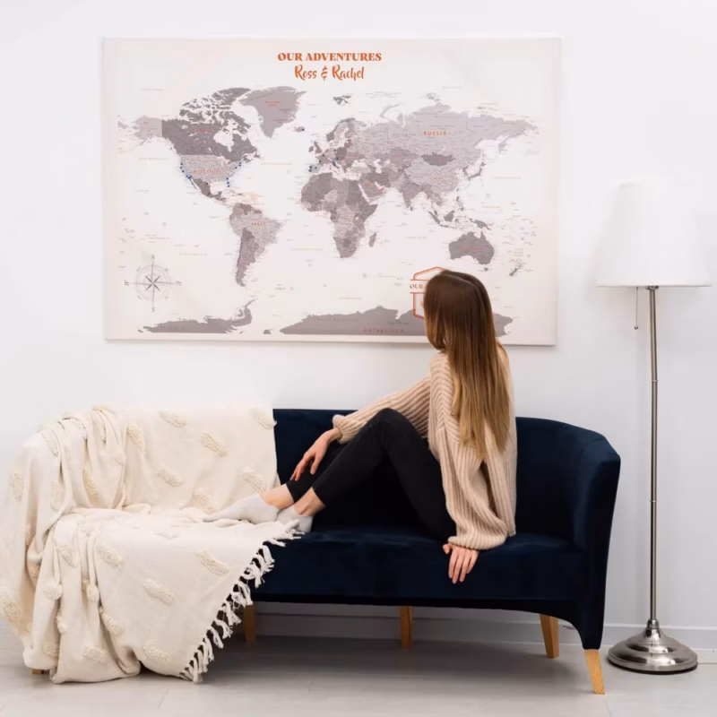Maailma Kaardid Lõuendil kollektsioon tõeline kunstiteos mis ühendab keerukaid mandrite, riikide ja linnade detaile ja elegantse disaini. Valige erinevate kujunduste hulgast, jäädvustage oma mälestusi, personaliseerige enda ruume.