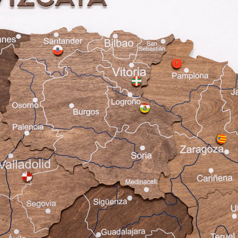 19 kleepuvat fiberwood-märki Hispaania autonoomsete ühenduste lippudega, käsitöö ja ohutu kasutus, kõik märgid ühel plaadil.