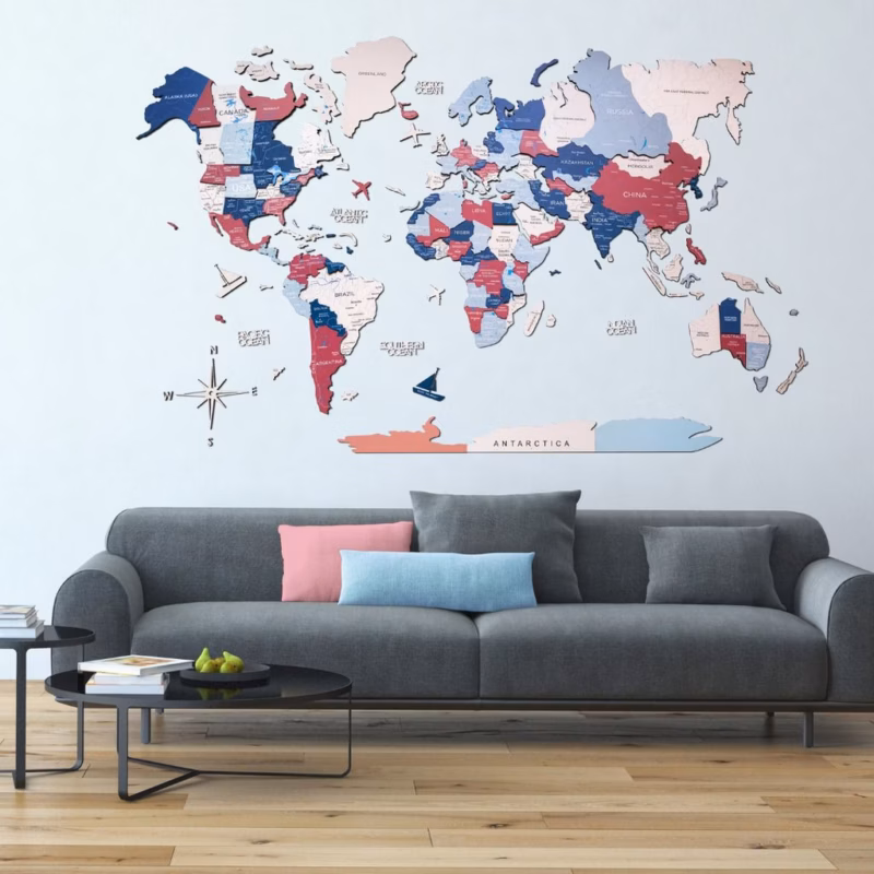 Puidust maailma seinakaarti iseloomustab stiil, hubasus ja isikupärasus.