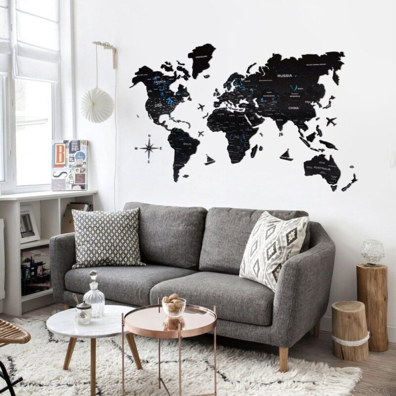 enjoythewoodestonia деревянная карта мира на стену | 2D чёрная