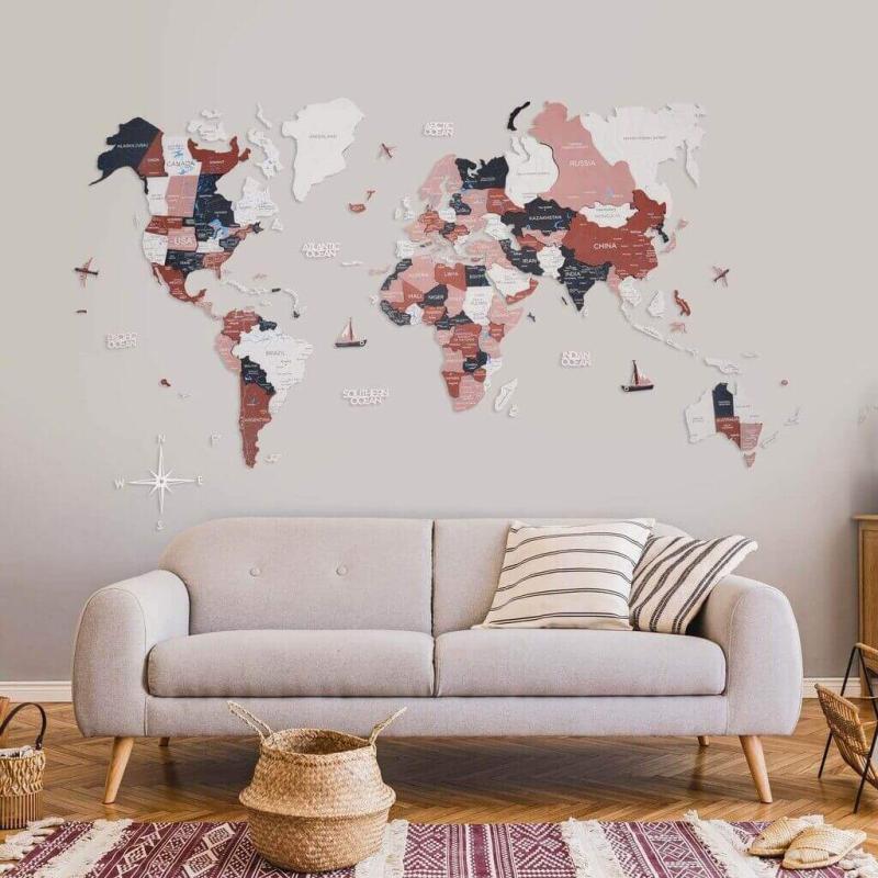 Деревянная карта мира на стену — это стиль, уют, необычность. Ну и конечно – качество!